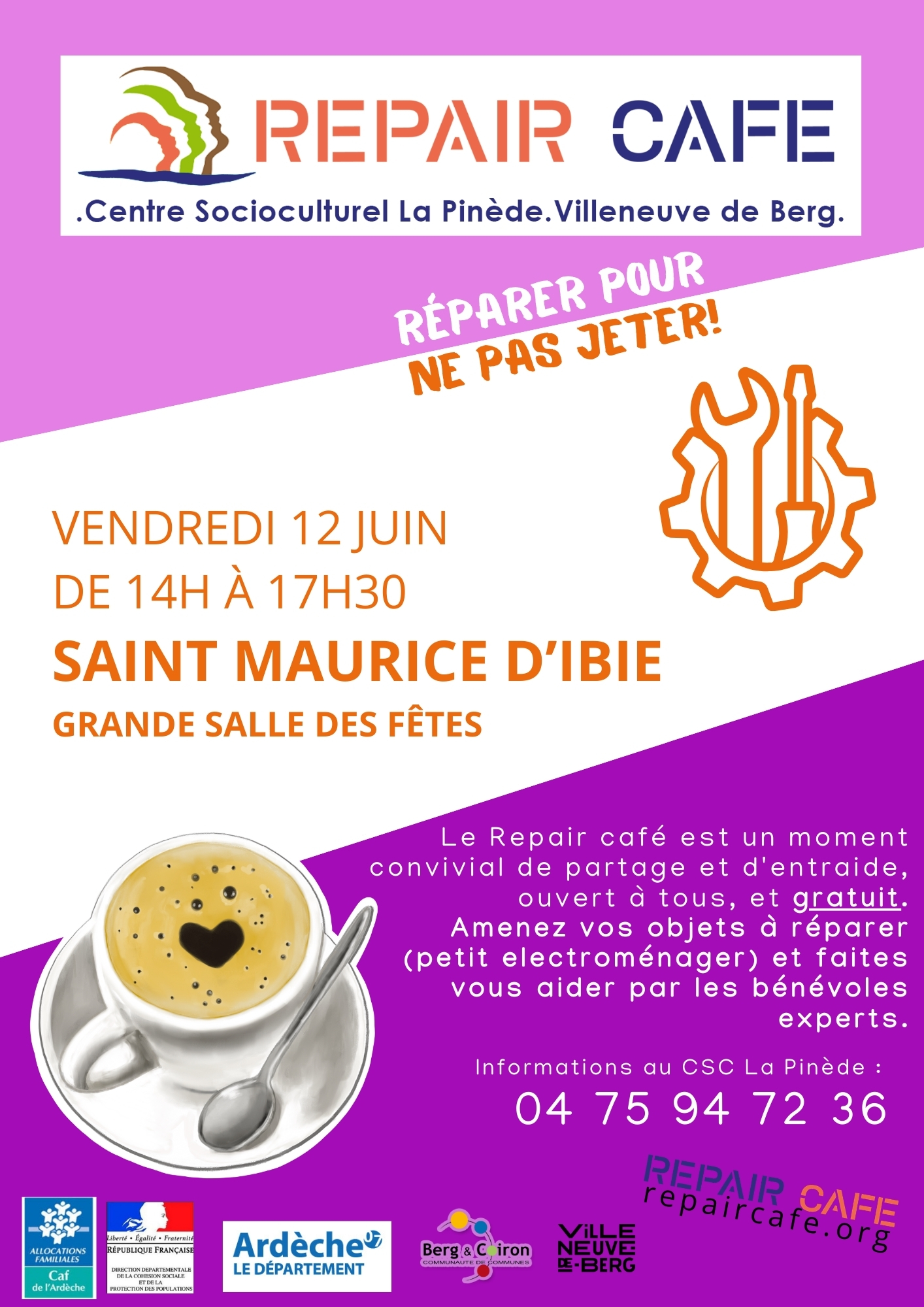 14 h 00 min - 17 h 30 min Repair café Saint maurice d’ibie juin 12 | 14 h 00 min - 17 h 30 min Repair café Saint maurice d’ibie Free