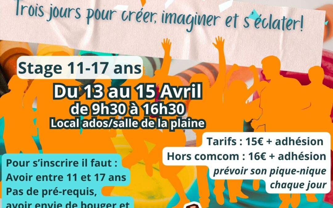 3 jours de stage pour les 11-17 ans, pour créer, imaginer et s’éclater,