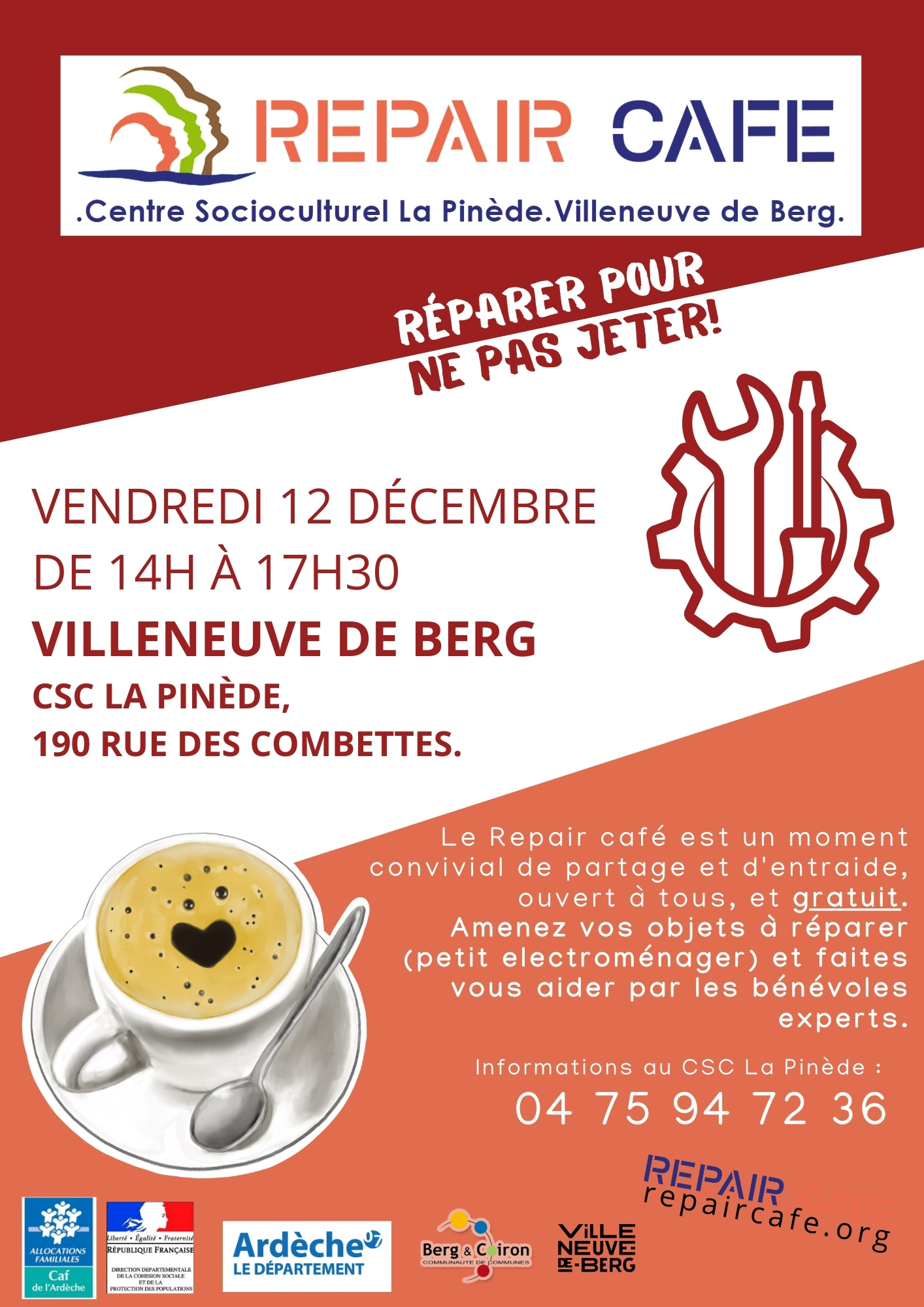 Le Prochain repair café aura lieu au CSC La Pinède le vendredi 12 décembre, de 14h à 17h30.