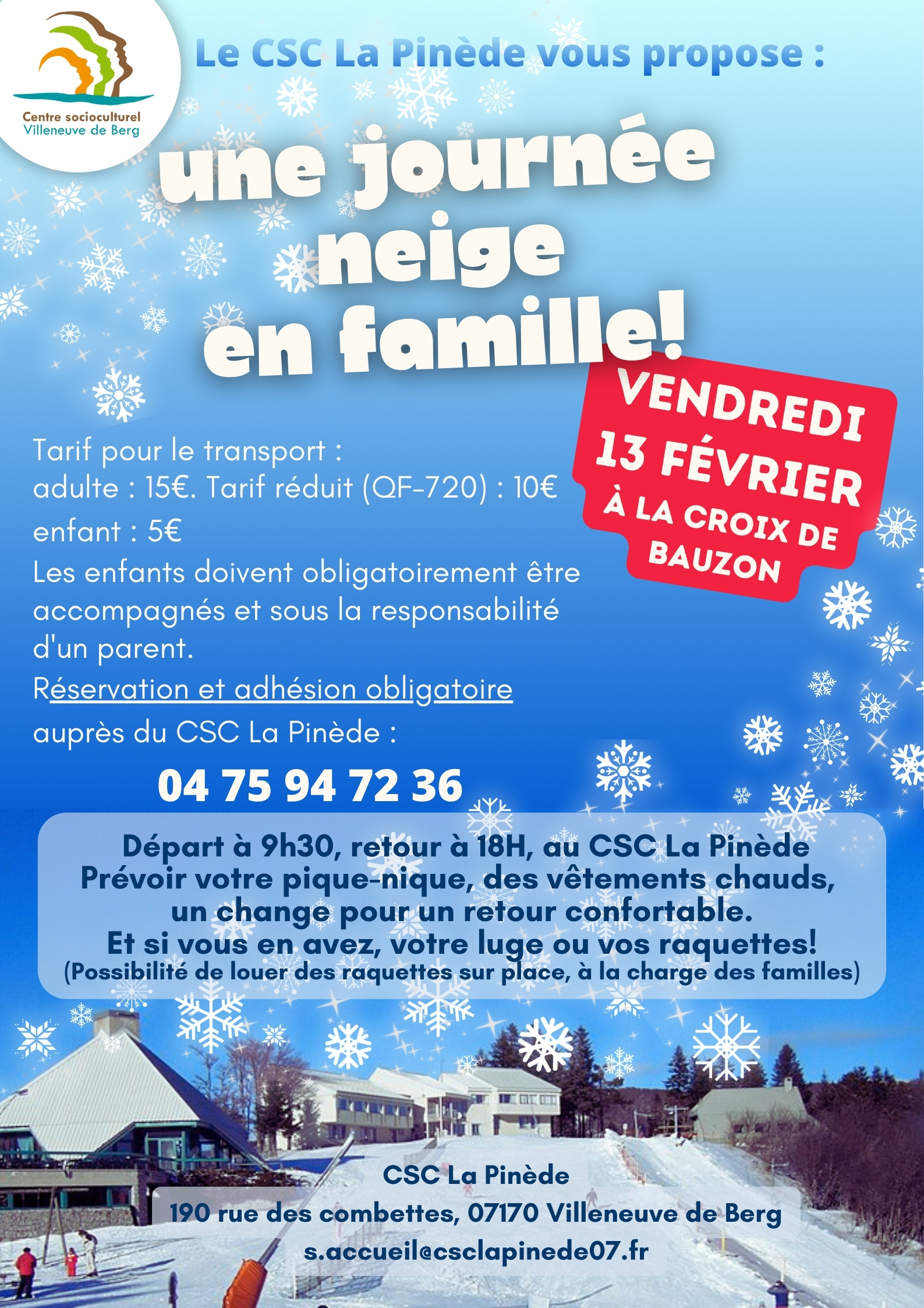 Sortie famille à La Croix de Bauzon, le vendredi 13 février.