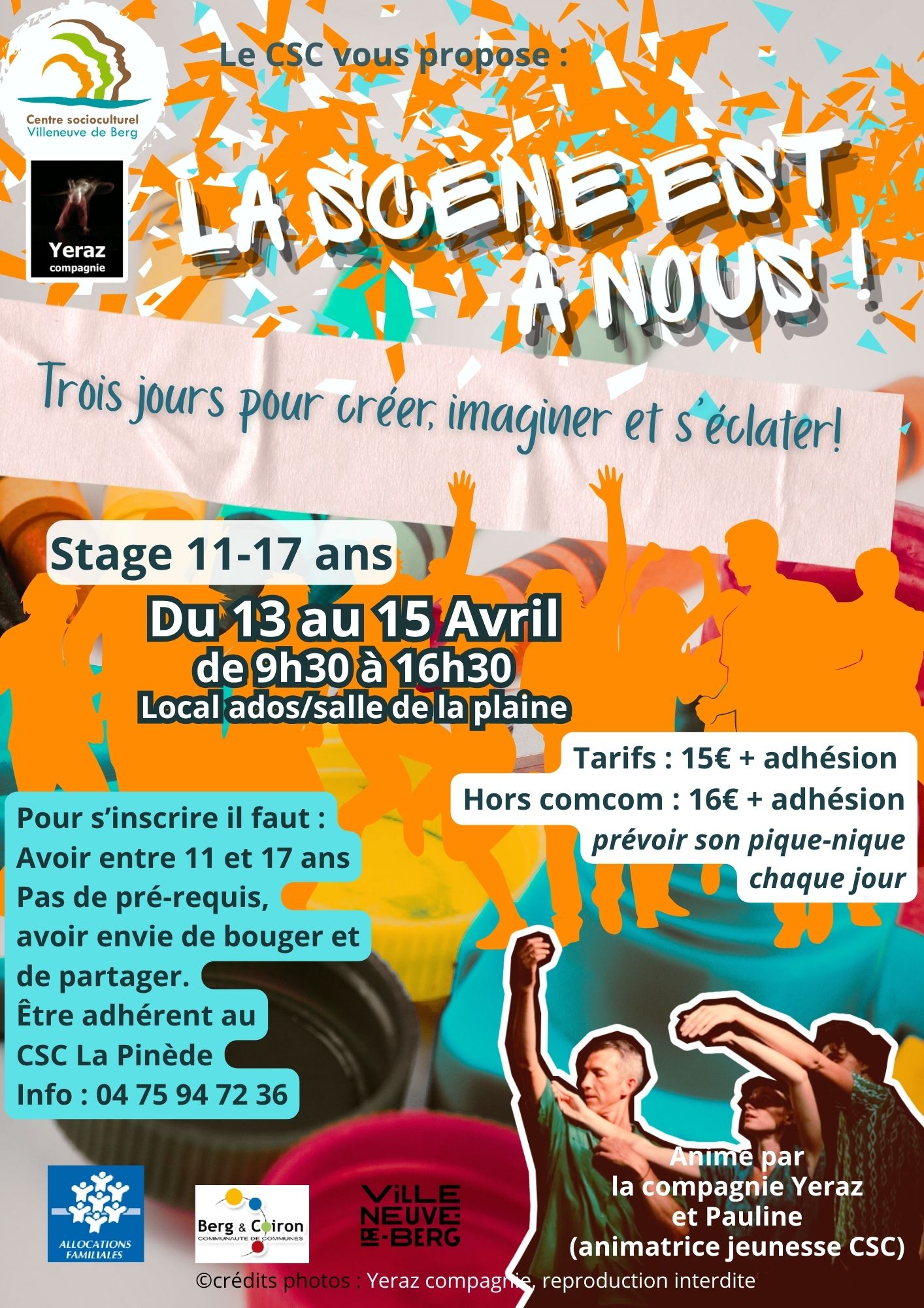 Le CSC propose un super programme pour les vacances de printemps, pour les ados de 12 à 15 ans inscrits au local ados :